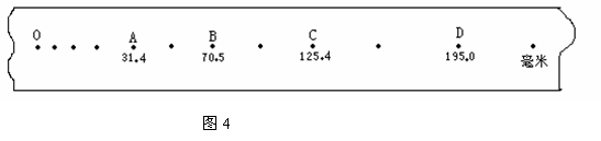 (4)某次“验证机械能守恒定律”的实验中,用6V、50Hz的打点计时器打出的一条无漏点的纸带,如图所示,O点为重锤下落的起点,选取的计数点为A、B、C、D,各计数点到O点的长度已在图上标出,单位为毫米,重力加速度取9.8m/s2,若重锤质量为1kg。