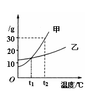 31.(4分)右图是甲、乙两种固体物质的溶解度曲线。
