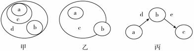 ①可以代表原核生物、细菌、乳酸菌和蓝藻关系的是甲图 ②能体现酶、蛋白质和激素关系的是乙图 ③若丙图中a表示抗原决定簇、b表示吞噬细胞和T细胞,c为B细胞,则该过程为细胞免疫的反应阶段 ④若丙图中a表示下丘脑、b表示垂体,c为甲状腺,则c分泌物增加,有可能抑制物质d、e的分泌
