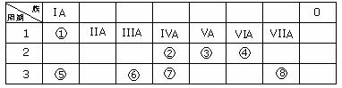 9.(天津理综第7题 14分)下表为元素周期表的一部分,请参照元素①-⑧在表中的位置,用化学用语回答下列问题: