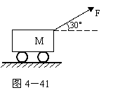 如图4-41所示,一个载货小车总质量为50kg,静止在水平地面上.现用大小为300N,跟水平方向成30°角斜向上的拉力拉动货车,做匀加速运动0.4s后撤去拉力,在经5s车的速度多大?货车运动的位移最大是多少?(已知