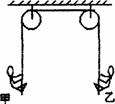3.如图所示,一条质量不计的绳子跨过同一水平面的两个光滑的定滑轮,甲、乙两人质量相等,但甲的力气比乙大,他们各自握紧绳子的一端由静止同时在同一高度开始向上爬,并且两人在爬动过程中尽力爬,则 ( )