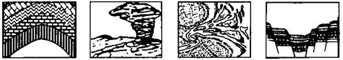 8、下列各图所表示的地质构造或地貌景观中,主要由于内力作用形成的是