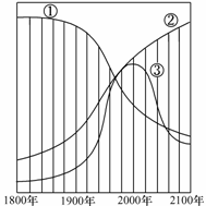 (1)图中①②③三条曲线代表环境污染变化趋势的