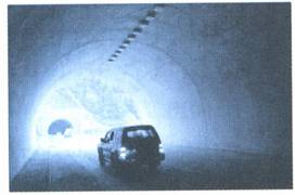 即在离隧道中心线2.7m处,隧道的高度低于货车的高度,因此货车不能驶入这个隧道。