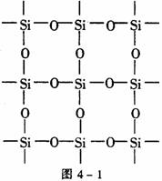 [解析] 由图4-1可以看出:每个硅原子周围结合4个氧原子,同时每个氧原子跟2个硅原子结合,因此二氧化硅晶体(石英)是由氧、硅原子按原子个数1∶2组成的立体空间网状结构的原子晶体。Si2O76-只有硅氧键,根据SiO44-的结构图可得Si2O76-的结构图见图4-3。