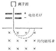 2、如图所示,质量为m带电量为q的带电粒子,从离子源以很小的速度进入电势差为U的电场中加速后垂直进入磁场强度为B的磁场中,不计粒子从离子源射出时的速度,求: