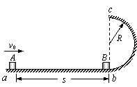 质量m = 0.1㎏的小滑块B放在半圆形轨道末端的b点,另一质量也为m = 0.1kg的小滑块A,以v0 = 2