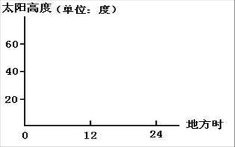 (7)在下图中画出此日Q地对跖点的太阳高度随时间变化的情况 (用折线) 。(2分)