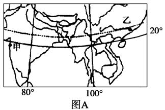 28.图A为“甲、乙两地地理位置示意图”,图B为“甲、乙两地年内气温与降水量变化图”。读图,回答下列问题。(14分)