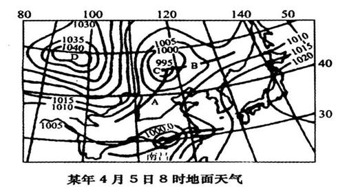 29.读“某年4月5日8时地面天气”图,回答下列各题:(15分)