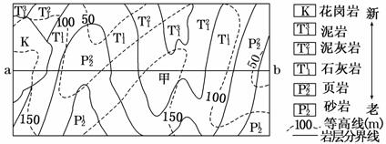 37.图中甲处地形与地质构造的组合正确的是 ( )