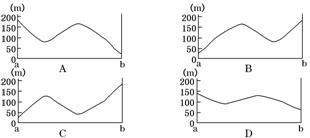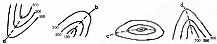 36.下列四幅剖面图中与沿中间剖面线的剖面图一致的是 ( )