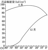 43.下图是北半球海平面6月和12月太阳月总辐射量随纬度变化示意图,读图回答下列问题。(10分)