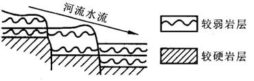 ⑶若河流A段的纵剖面如下图所示,则形成的地理景观最有可能是( )