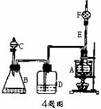 ,如下图是某校化学课外活动小组设计的乙醇与氢卤酸反应的实验装置图。在烧瓶A中放一些新制的无水CuSO4粉末,并加入约20mL无水乙醇;锥形瓶B中盛放浓盐酸;分液漏斗C和广口瓶D中均盛浓H2SO4;干燥管F中填满碱石灰;烧杯作水浴器。