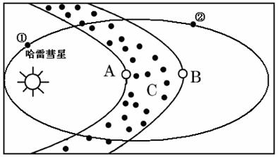 (1)哈雷彗星位于图中①②两处时,彗尾更长的是 处,哈雷彗星的绕太阳公转的方向为 (顺、逆)时针方向。