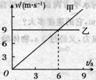 21.甲、乙两物体沿同一方向做直线运动,6s末在途中相遇,它们的速度图像如图所示,可以确定                          (   )