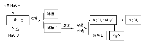 广东省有着丰富的海洋资源。海水提取食盐和Br2以后的盐卤可以用来制备纯净的MgCl2或MgO。盐卤中含有Mg2+、Cl-,还含有少量Na+、Fe2+、Fe3+、和CO(NH2)2等。制备流程如下图: