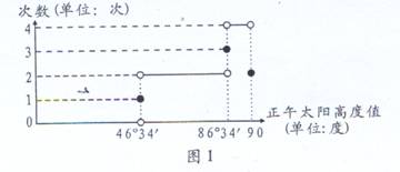 2.夏至日时,该地正午太阳高度值的年内出现频次为