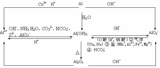 Al2O3、Al(OH)3仅能溶于强酸和强碱溶液中(如在氨水和碳酸中均不溶),Al3+、AlO2-只能分别存在于酸性与碱性溶液中。
