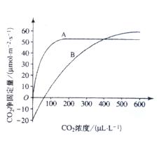 (2)B 两种植物光合作用强度对CO2浓度变化的响应特性不同,在低浓度CO2条件下,CB植物利用CO2进行光合作用的能力弱,积累光合产物少,故随着玻璃罩中CO2浓度的降低,B植物生长首先受到影响。