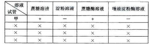 若“+”代表加入适量的溶液,“-”代表不加溶液,甲、乙等代表试管标号,请用这些符号完成下表实验设计(把答案填在答题卡上相应的表格中)。
