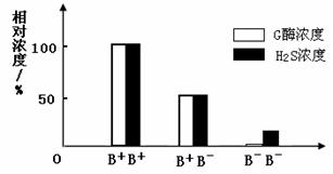(3)右图表示不用基因型小鼠血浆中G酶浓度和H2S浓度的关系。B-B-个体的血浆中没有G酶而仍有少量H2S产生,这是因为_________________。通过比较B+B+和B+B-个体的基因型、G酶浓度与H2S浓度之间的关系,可得出的结论是________________。