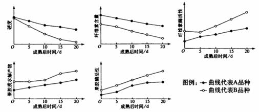 30.桃果成熟后,如果软化快,耐储运能力差,下图表示A、B两个品种桃果成熟后硬度变化的实验结果。![]()