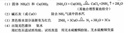 [解析]本题考查化学实验和有关化学方程式,注意化学实验现象的描述和试剂的选择。根据反应原理,反应物为氨气和氧化铜,可以判断试管A为制取氨气的装置,因此装入的药品应该为氯化铵和氢氧化钙,氨气要使用碱石灰。加热后,黑色氧化铜变为红色的铜,生成的水和氨气生成氨水留在了D中,而氮气通过排水法进行收集。检验氨气可利用其碱性,检验水可以用无水硫酸铜。