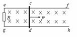 9、如图所示,ef,gh为水平放置的足够长的平行光滑导轨,导轨间距为L=1m,导轨左端连接一个R=1.5Ω的电阻,将一根质量m=0.2kg、电阻r=0.5Ω的金属棒cd垂直地放置导轨上,且与导轨接触良好,导轨的电阻不计,整个装置放在磁感应强度为B=2T的匀强磁场中,磁场方向垂直于导轨平面向下。现对金属棒施加一水平向右的拉力F,使棒从静止开始向右运动。试解答以下问题。