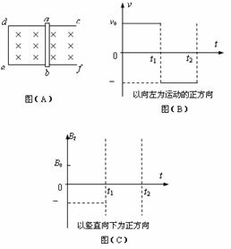 10、如图(A)所示,固定于水平桌面上的金属架cdef,处在一竖直向下的匀强磁场中,磁感应强度的大小为B0,金属棒ab搁在框架上,可无摩擦地滑动,此时adeb构成一个边长为l的正方形,金属棒的电阻为r,其余部分的电阻不计。从t=0的时刻起,磁场开始均匀增加,磁感应强度变化率的大小为k(k=)。求: