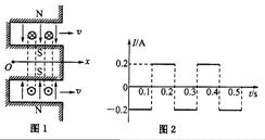 从图1中可以看出线圈沿x正方向运动时,产生的感应电流是顺时针的(从左向右看),于是可得到如图2所示的电流随时间变化的图象.