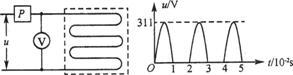 例2.如图所示是某种型号的电热毯的电路图,电热毯接在交变电源上,通过装置P使加在电热丝上的电压的波形如右图所示.此时接在电热丝两端的交流电压表的读数为 ( )