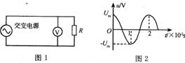 2.正弦交变电源与电阻R、交流电压表按照图1所示的方式连接,R=10Ω,交流电压表的示数是10 V.图2是交变电源输出电压u随时间t变化的图象.则( )