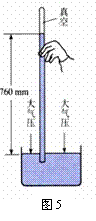 12. 如图5所示 ,利用托里拆利实验装置测量大气压强时,当玻璃管内的