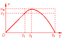 (3)从滑块静止释放瞬间开始计时,请在乙图中画出滑块在沿斜面向下运动的整个过程中速度与时间关系v-t图象。图中横坐标轴上的t1、t2及t3分别表示滑块第一次与弹簧上端接触、第一次速度达到最大值及第一次速度减为零的时刻,纵坐标轴上的v1为滑块在t1时刻的速度大小,vm是题中所指的物理量。(本小题不要求写出计算过程)