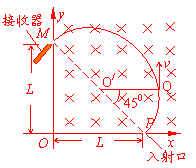 所加电场的长枪方向沿x轴正方向。由几何关系可知,圆弧PQ所对应的圆心角为45°,设带点粒子做匀速圆周运动的周期为T,所求时间为t,则有
