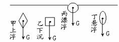 如图所示:甲、乙、丙、丁是四个材料、体积、形状互不相同的物体,图中注明了它们的浮沉情况及其每个物体受到的重力G,在图中画出每个物体受到的浮力F浮。