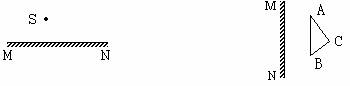 S为发光点,试作出S在平面镜MN中的成像光路图。