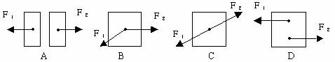 1.如图所示,A、B、C、D四图中,F1、F2平衡的是: ( )