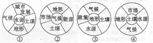 16、下图是立体农业、灌溉农业、茶叶园艺农业、热带作物种植业的主要制约条件图,按顺序判断正确的是