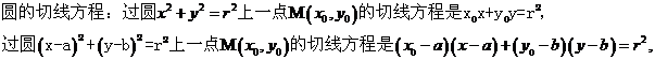 从圆外一点引圆的切线一定有两条,可先设切线方程,再根据相切的条件来求。过两切点的直线方程的求法:先求出以已知圆的圆心和这点为直径端点的圆,该圆与已知圆的公共弦就是过两切点的直线方程。