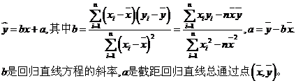 8、 相关关系:与函数关系(确定关系)不同,相关关系是一种不确定性关系。从散点图上看,如果散点分布在从左下角到右上角的区域内,这两个变量的相关关系称为正相关,如果散点分布在从左上角到右下角的区域内,这两个变量的相关关系称为负相关。如果这些点从整体上看大致分布在一条直线的附近,则称这两个变量具有线性相关,这条直线叫回归直线。回归直线是: