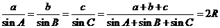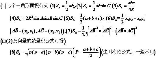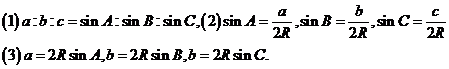 1、正弦定理:在三角形ABC中,a,b,c分别为角A,B,C的对边,R为三角形ABC的外接圆的半径,则有