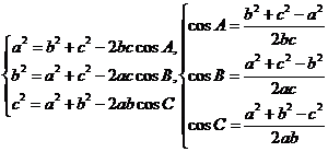 余弦定理在解三角形中的应用:(1)已知两边和夹角,(2)已知三边。