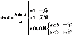 (2)已知两边和其中一边的对角,解三角形,要注意对解的个数的讨论。可按如下步骤和方法进行:先看已知角的性质和已知两边的大小关系。如已知a,b,A.(一)若A为钝角或直角,当b≥a时,则无解。当a≥b时,有只有一个解。(二)若A为锐角,结合下图理解。1)若a≥b或a=bsinA,则只有一个解。2)若bsinA<a<b,则有两解。3)若a<bsinA,则无解。
