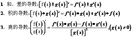 复合函数的导数:首先要弄清复合函数的复合关系。它的求导法则是:复合函数对自变量的导数,等于已知函数对中间变量的导数乘以中间变量对自变量的导数,即![]()