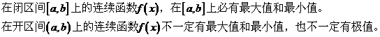 在根左右两侧符号,若左正右负,则f(x)在该根处取极大值;若左负右正,则f(x)在该根处取极小值;把极值与区间端点函数值比较,最大的为最大值,最小的是最小值. 如:(1)函数