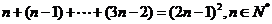 (2)、观察下式:1=12,2+3+4=32,3+4+5+6+7=52,4+5+6+7+8+9+10=72,…,则可得出一般结论: .